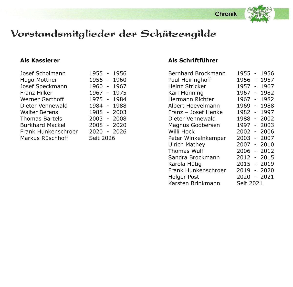 Wer war was und wann bei der Schützengilde !
